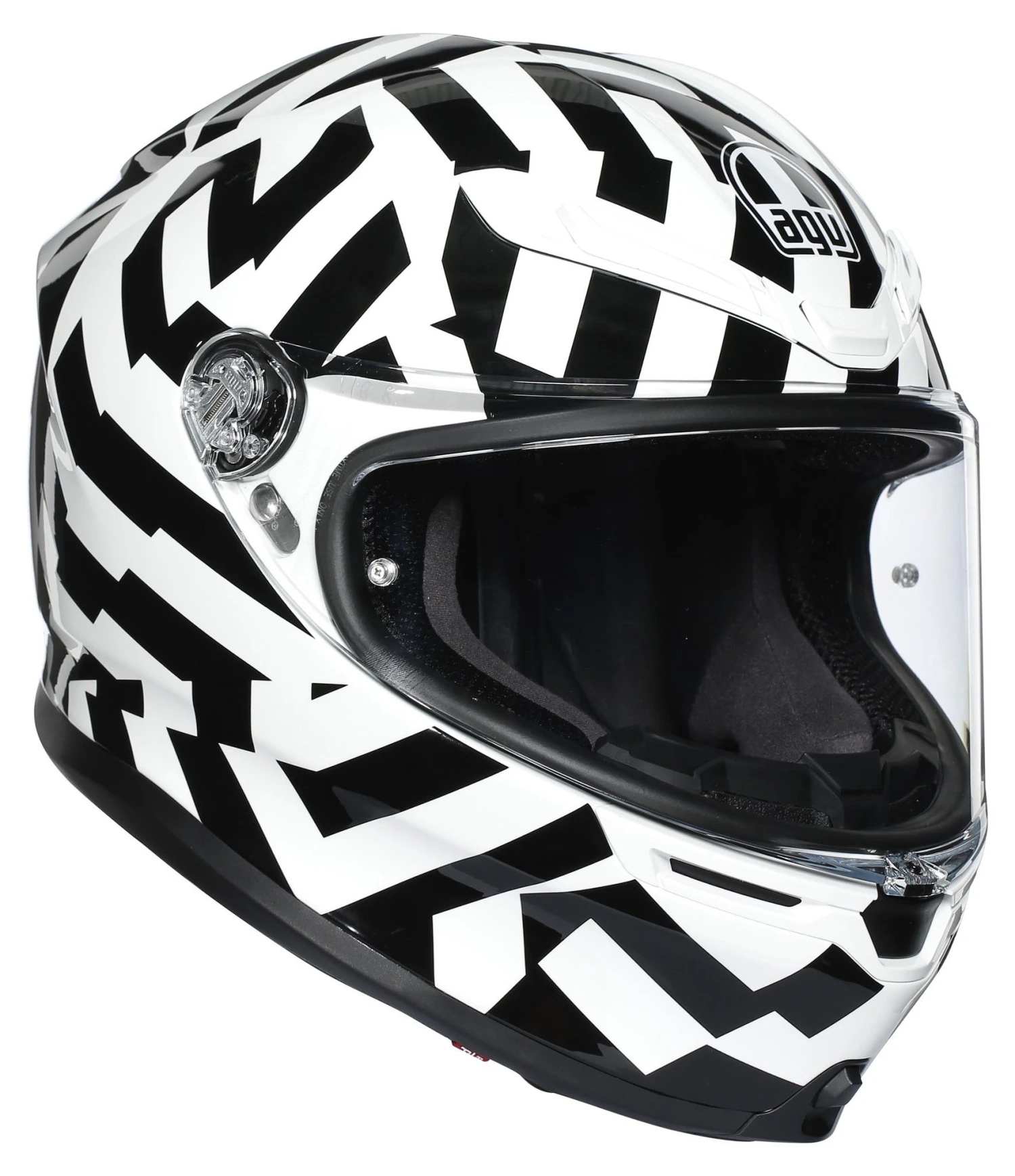 De AGV K6 doet intrede in een voor de Italianen nieuw segment. Een hoogwaardige allround motorhelm waarbij de sportieve aspiraties van de Italianen nauwelijks worden onderdrukt. Varvaardigd uit een hoogwaardige carbon-aramide mix helmschaal, uiterst compact en aerodymisch gevormd voor uiteenlopende zithoudingen. Bovendien hebben de Italianen enkel de beste materialen geselecteerd en een optic class 1 vizier voor een optimale doorkijk. Standaard voorzien van een Pinlock 120 lens en Dubbel-D sluiting. Van naked bike, sport, tot sport touring rijder. Het gewicht van de AGV K6 blijft steken op slechts 1350 gram.