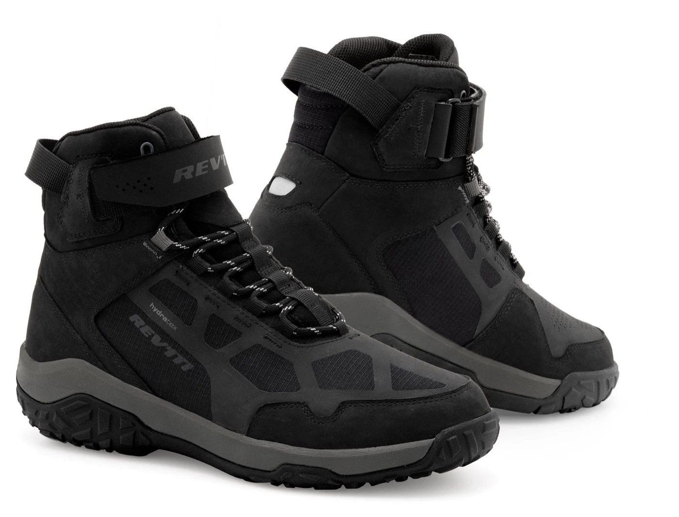 De REV’IT! Descent H2O motorschoen is de aangewezen optie voor de avontuurlijke motorrijder die ook meer dan eens de reis te voet vervolgt. Invloeden vanuit de hiking boot zijn duidelijk terug te zien in het ontwerp maar ook in de eigenschappen is hier op ingespeeld. De door REV’IT! ontwikkelde rubberen zool in combinatie met de EVA middenzool geeft de drager grip op elke ondergrond. Het Ortholite® voetbed is de comfortverschaffer wanneer je de motor afstapt. Zoals de naam doet vermoeden is de Descent uitgerust met een waterdicht Hydratex Z-liner membraan om je voeten ten alle tijden nattigheid te besparen.