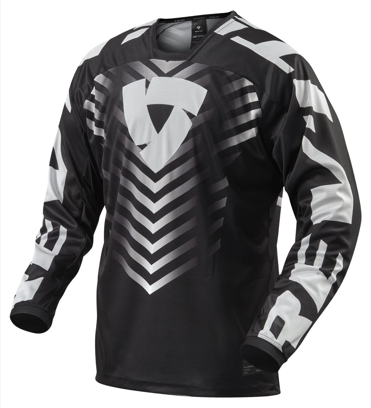 Eerder was hij alleen toegankelijk voor de professionele rijders, nu voor het grote publiek. Met de Jersey Rough draag je het REV’IT! Shield logo op de motocross track of in de bossen. De Rough Jersey is licht van gewicht. De stof heeft vocht afdragende eigenschappen zodat jij je optimaal kunt focussen. Het shirt is gemaakt van polyester en heeft ventilerende en stretchende eigenschappen. De Jersey Rough heeft een ruime fit zodat hij goed over een armored shirt gedragen kan worden.