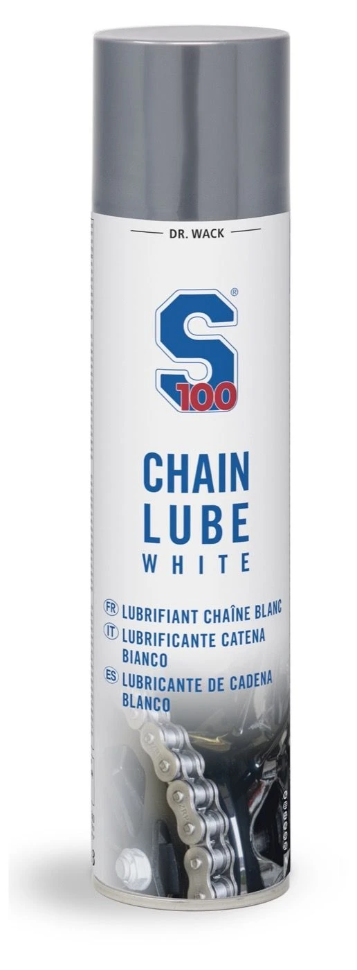 De S100 Witte Kettingspray 2.0 is een universeel smeermiddel voor alle typen motorkettingen (X-, O- en Z-ringen). De krachtige formule, verrijkt met PTFE wordt geroemd door veel motorrijders door de sterke kleefkracht, corrosie-werende eigenschappen en het eenvoudige aanbrengen. Bovendien kun je deze gebruiken in alle weersomstandigheden en is het bestand tegen regen. De S100 witte kettingspray komt in 400ml spuitbus en hecht zich diep tussen de schakels om het afspatten tegen te gaan. Zo voorkom je dat je velgen overmatig vuil raken. Door de wit-kleurige vloeistof weet je exact welk deel van de motorketting je gesmeerd hebt. Wanneer je S100 Witte Kettingspray 2.0 gebruikt verleng je de levensduur van je motorketting en -tandwielen aanzienlijk.